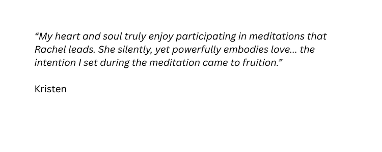 "Rachel guides you into the depths of your highest truth, your highest self. I've experienced great stillness and clarity in our sessions, always leaving with an open heart. Her wisdom runs deep, and her grace is palpable. I highly recommend her beautiful offerings."— Brenna